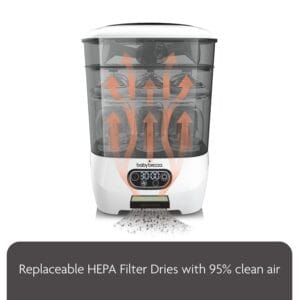 Zgjidhni nga 6 mënyrat e pastrimit: Lani, sterilizoni dhe thajeni; Lani dhe thajeni; Vetëm lani; Sterilizimi dhe tharja; Sterilizoj vetëm; Vetëm e thatë. Asnjëherë mos pastroni ose përdorni më raft për tharjen e shisheve të foshnjës; Larja pa duar ju kursen kohë të vlefshme çdo ditë