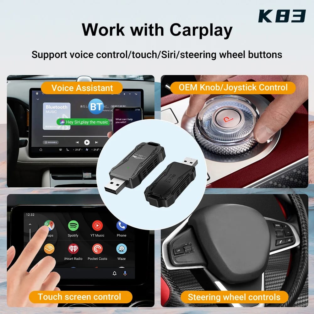2 NË 1 K83 Mini Carplay Wireless Adapter