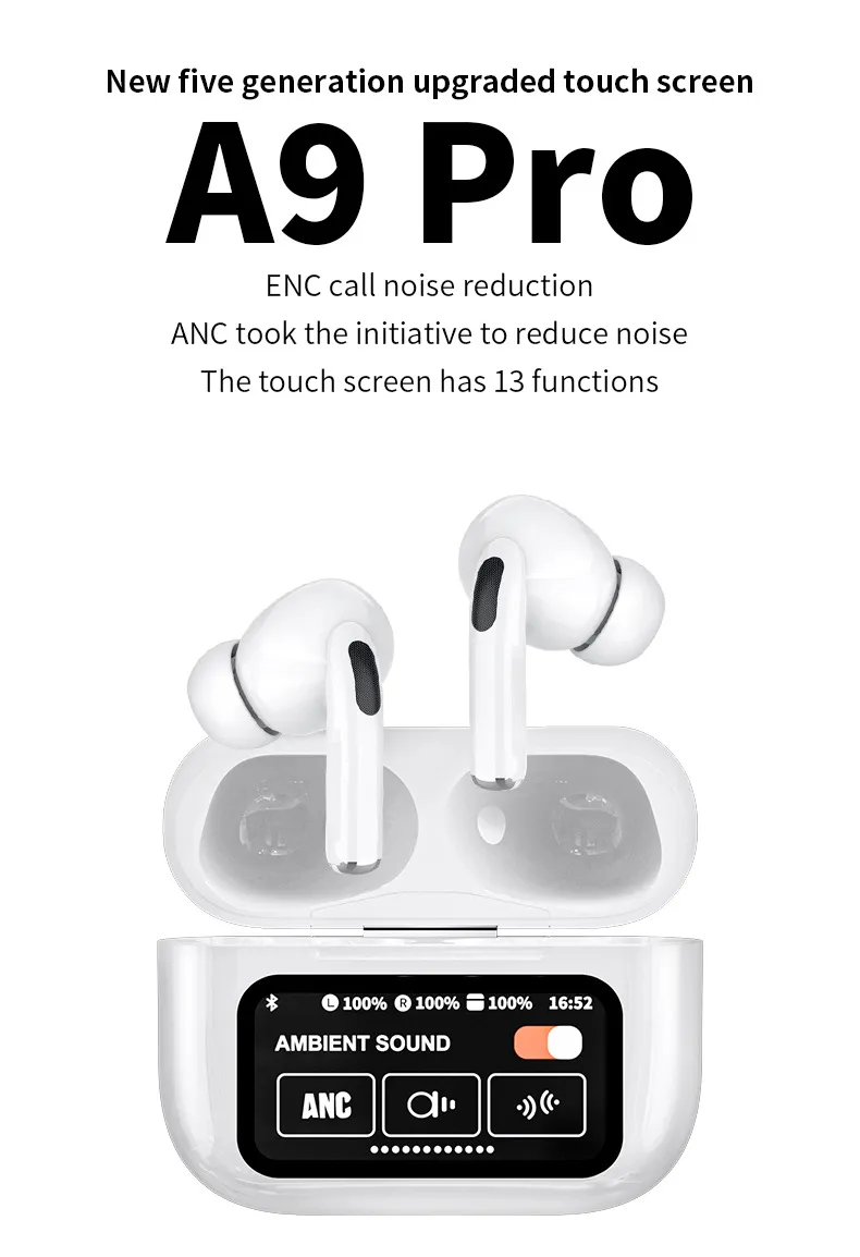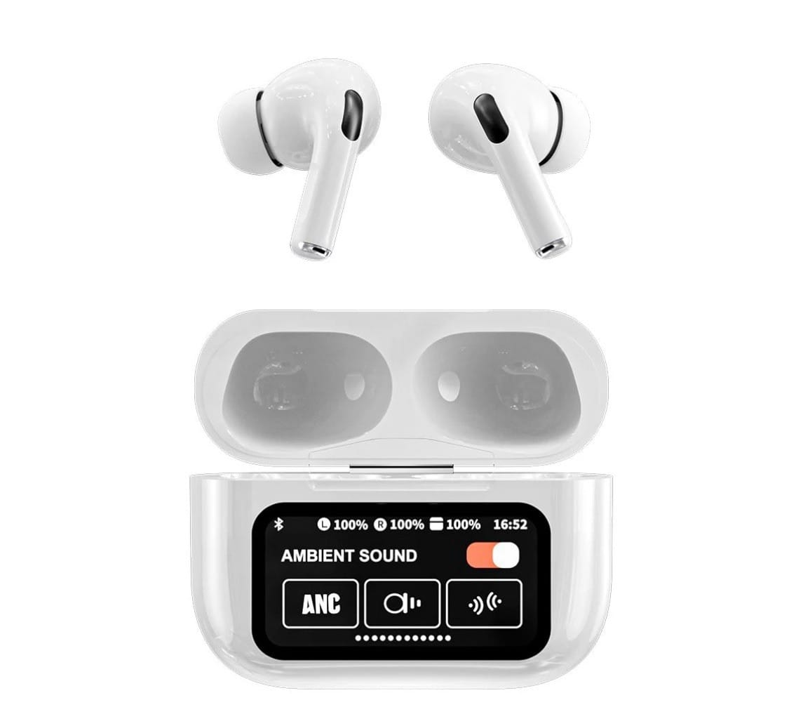Kufje pa tela A9 Pro me anulim aktiv të zhurmës, modalitet tingulli ambienti, kuti ekrani Bluetooth, e bardhë