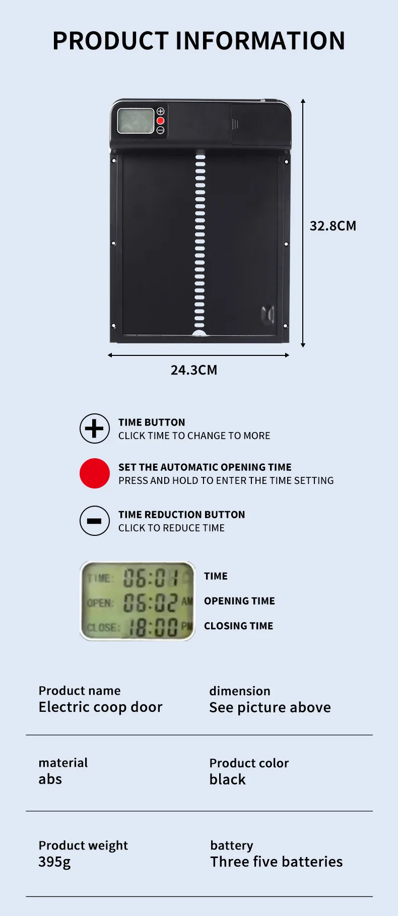 Derë Automatike e Kafazit të Pulave me Kohëmatës – Alumini + ABS, Induksion Inteligjent Kundër Shtrëngimit, Portë Elektrike Shpendësh IPX3 e papërshkueshme nga uji për Fermë