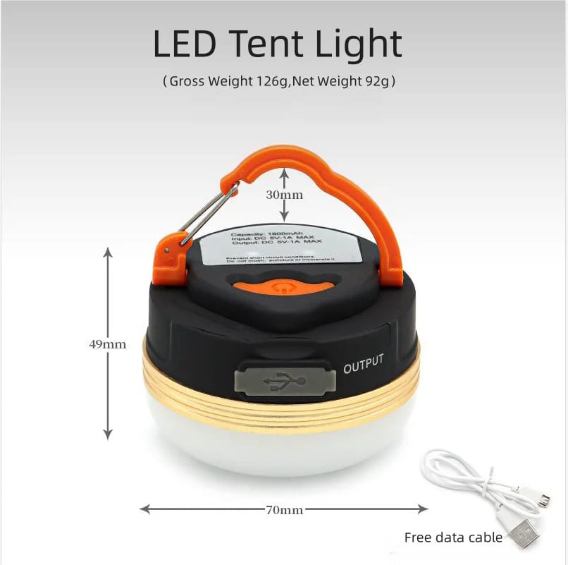 Drita e vogël e kampingut peshon vetëm 4.46OZ – kompakte, e lehtë, kursen hapësirë dhe është e lehtë për t’u mbajtur, madhësi perfekte për udhëtim. Grep i palosshëm për shumë qëllime, mund të varet në tenda ose pemë, me magnet për sipërfaqet metalike