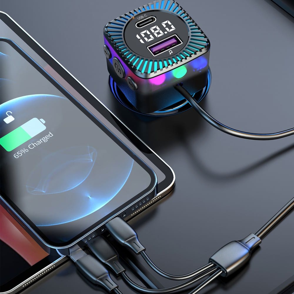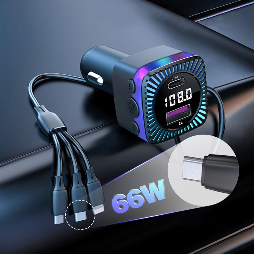 Earldom®3in1 M98 PD QC 66W 3.1A LED FM Transmitter Bluetooth Charger