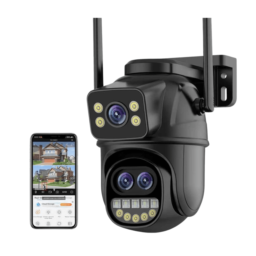 – Ekran i dyfishtë me tre Lente dhe sensorë të dyfishtë, Shikim me kënd të gjerë + Shikim në distancë të gjatë për të arritur monitorim të qartë nga larg dhe afër;
