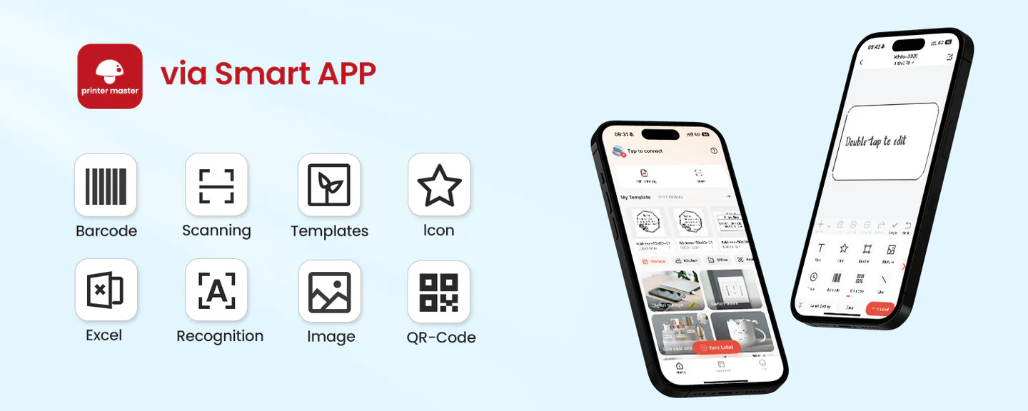 Përputhshmëri e lartë: Mbështet të gjitha llojet e etiketave me gjerësi 20-50 mm, mbështet celularët dhe tabletët iOS dhe Android për t’u lidhur me valë përmes Pinter Master, dhe gjithashtu mund të përdorë kabllon e të dhënave për t’u lidhur me një kompjuter për të printuar.